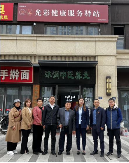 | 2023年4月23日,昌乐县民政局党组成员、副局长王旭平,昌乐县融媒体中心首席记者隋海鹏,山东胜颐集团董事长、潍坊市残联副主席于胜颐,山东胜颐集团办公室主任王恩惠来青考察光彩健康服务驿站。