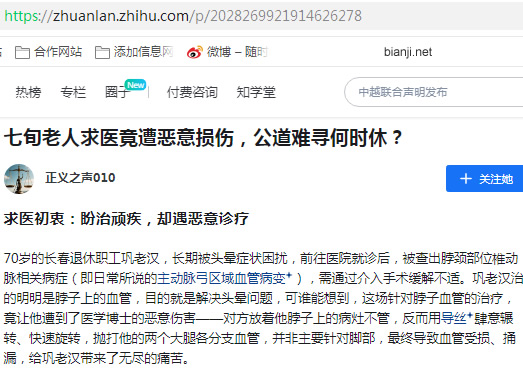 七旬老人求医竟遭恶意损伤,公道难寻何时休?时间: 2026年4月18日 作者:314127396 来源:网络整理 点击: 2次